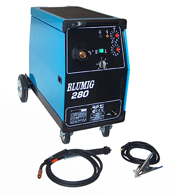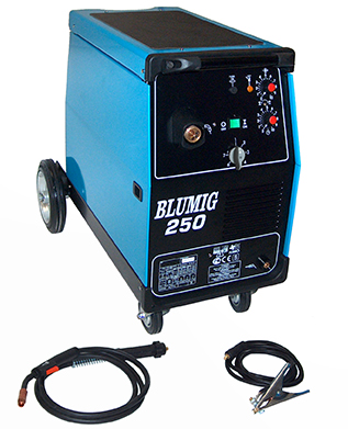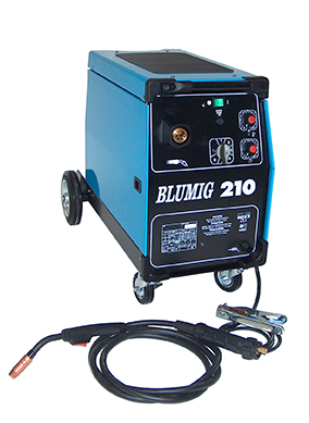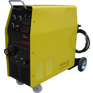 Máquina de soldar MIG semi automática de electrodo continuo para aplicaciones semi industriales, monofásicas compactas con ruedas,