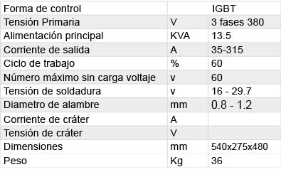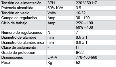 Incluye pistola Mig de 4,5 mts. con conexión europea, regulador, manguera de gas, pinza y cable toma tierra, todas las máquinas llevan temporizador para soldaduras por puntos.